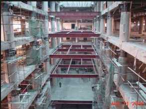? ? 市某單位的擴(kuò)建生產(chǎn)用房房屋安全檢測及抗震鑒定項目,聯(lián)系到我院,我院專家在查看現(xiàn)場,做現(xiàn)場勘查、調(diào)查之后解到,該房于2011年設(shè)計建造,廠房平面形式為矩形,平面布置規(guī)則,建筑物總長為191米,總寬20米,建筑總面積為41936平米。該擴(kuò)建廠房主體結(jié)構(gòu)形式是單層單跨排架結(jié)構(gòu),橫向一跨,縱向一共有27個開間。該擴(kuò)建廠房結(jié)構(gòu)屋頂高為10米,檐口高度19米,牛腿高度為6米。為了充分了解該擴(kuò)建鋼結(jié)構(gòu)廠房施工質(zhì)量與結(jié)構(gòu)的安全性,特地委托我院對這座廠房進(jìn)行廠房改造鑒定,并提出廠房改造的加固處理意見。